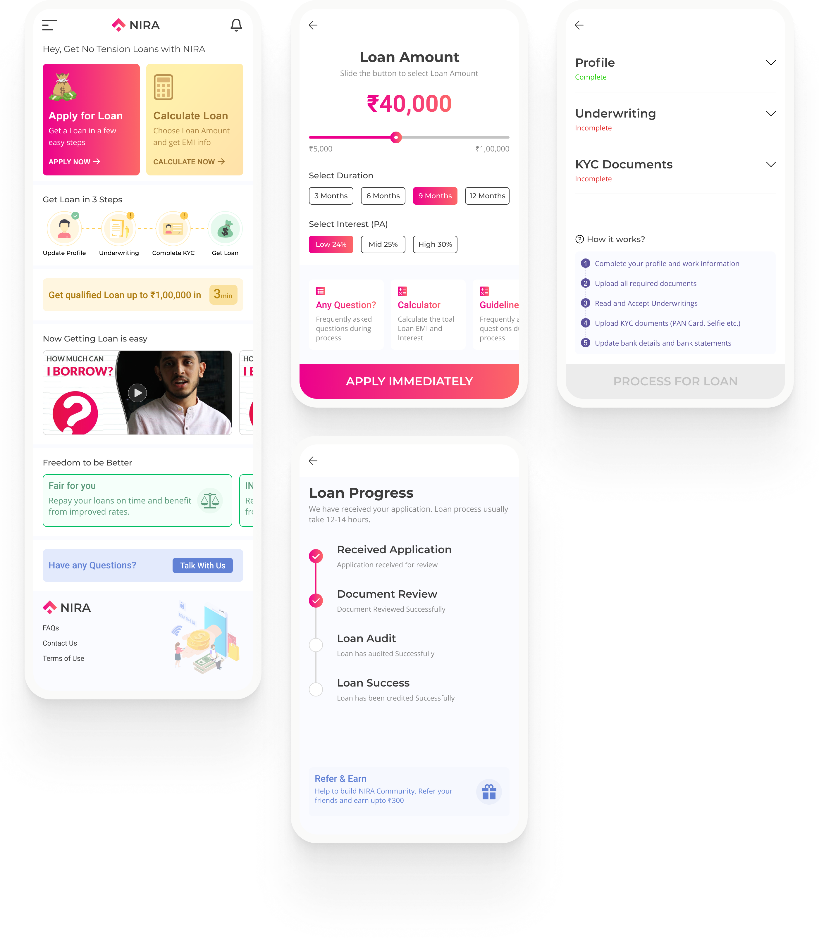 2. Progress Page - When the user submits the application, he/she needs to wait until the application passes and Loan Transferred. Depending on process time. There is no way for the user to know if at what stage his/her application procced till now.