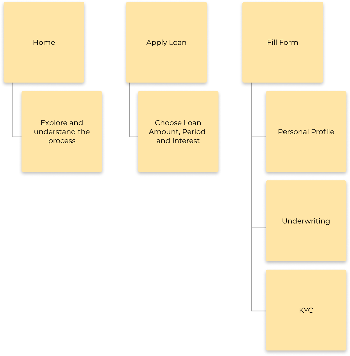 Explore Bank > Talk and Understand the Process for Loan with Manager > Fill Application Form > Verification Process > Loan Audit > Loan Transfer